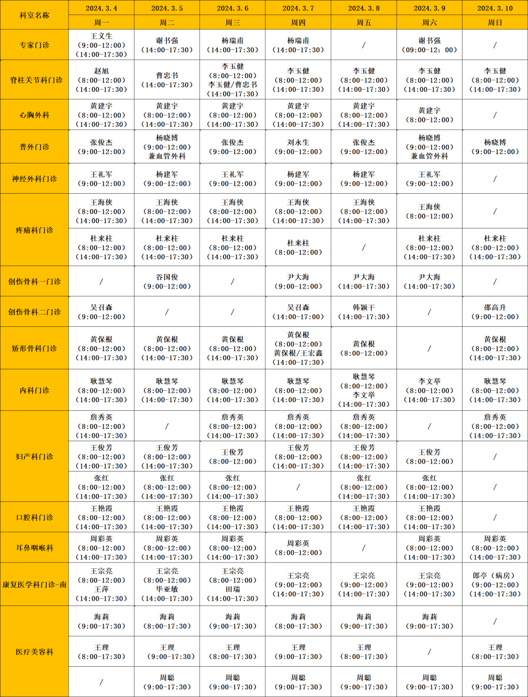 清明假期 专家正常坐诊门诊专家坐诊表 先睹为快